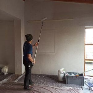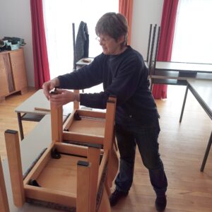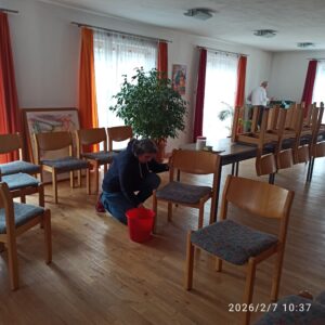 Es wurde der Andachtsraum gestrichen, der Schuppen entrümpelt und aufgeräumt, 80 Stühle geputzt und mit Filz versehen, beim zukünftigen Büroraum der Boden geschliffen und lackiert und vieles mehr.
